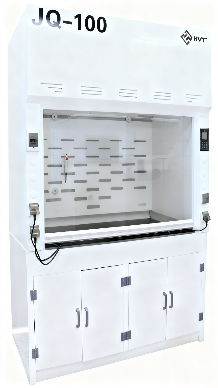 Exhaust system removes volatile fumes, complying with university lab safety standards.